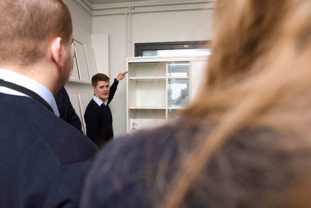 Mittatilauksena Suomessa valmistetut kalusteet, oma tehdas ja kokenut asennustiimi tuovat tekemiseen tasaisen laadun. Kun koko ketju on omissa käsissä, myös vastuu on selkeä.
