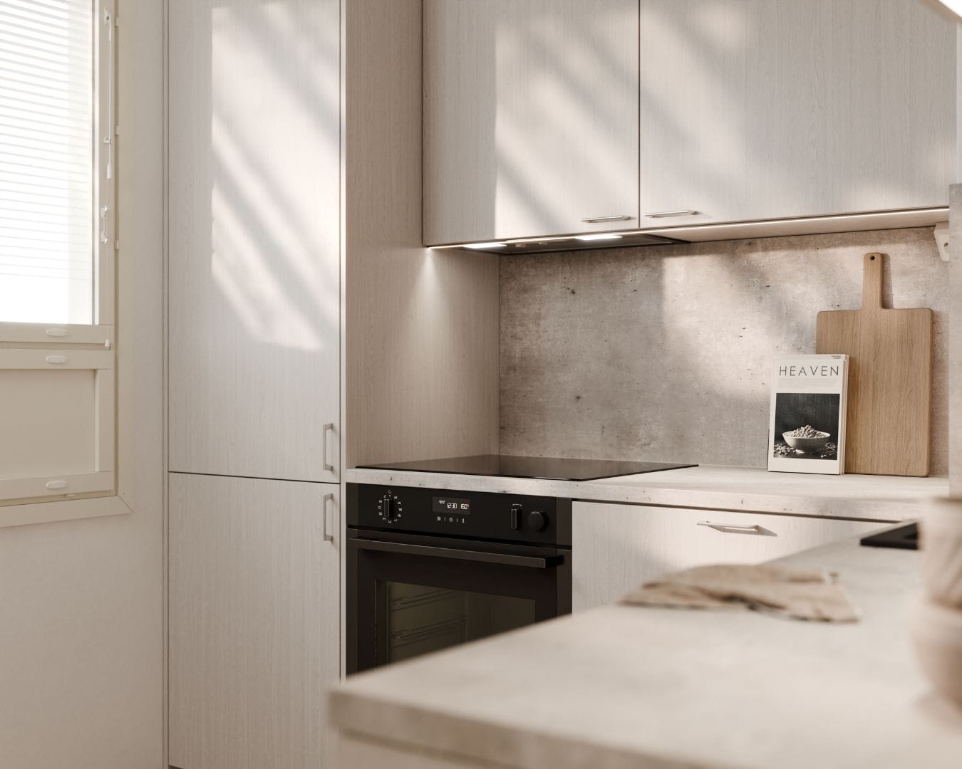 Ilta-keittiömallisto tuo kotiin rauhallista eleganssia ja luonnollista lämpöä. Vaalea puunsyykuvio on yksi suomalaisten suosikeista – eikä ihme, sillä se luo tilaan keveyttä, selkeyttä ja ajatonta kauneutta. Ilta-malliston sävymaailma on saanut inspiraationsa lämpimistä kesäilloista, joissa valo pehmenee ja puunsyyt piirtyvät kauniisti esiin.