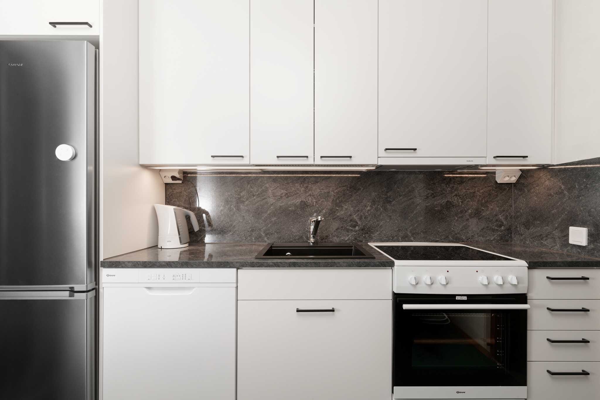 Tähän kohteeseen on toteutettu Idekon Koko -remontti, jossa on uusittu kaikki pinnat ja vetimet, parannettu toiminnallisuutta ja lisätty mekanismeja. Kaiki kodinkoneet on myös uusittu.